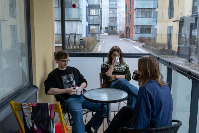 Under måndag förmiddag hälsade vi på Härkönen och två av hennes rumskamrater, Birk Johansson och Leonard Järf. Gruppen har bott tillsammans i lite mindre än två år, och berättade för oss hur det har varit att bo så många i samma lägenhet.
