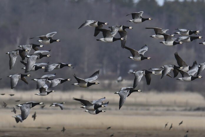 Det handlar om tusentals vitkindade gäss. Bland annat på måndagskvällen observerades 11 600 vitkindade gäss passera Helsingfors.