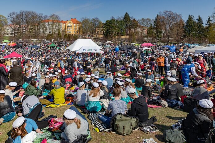 - Picknick på första maj är en populär tradition, och varje år samlas folk i Brunnsparken i Helsingfors med familj och vänner, oberoende väder!